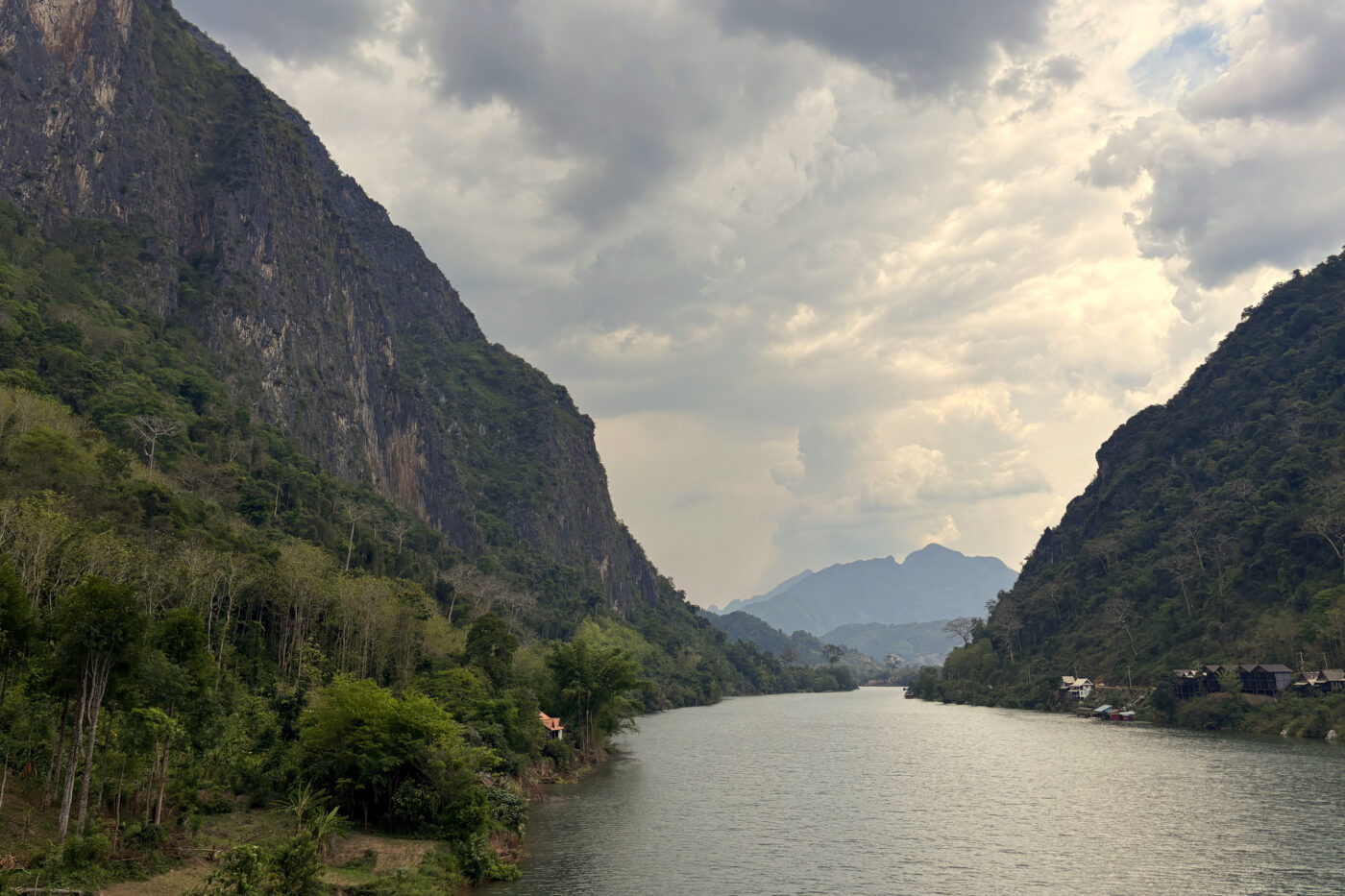 This morning I finally joined the one-day tour to explore the area surrounding Nong Khiaw. (I had to cancel yesterday’s attempt after the vendor delayed our start by over an hour. I never got the partial refund I was promised, but at least we left on time today.) We started by boarding a traditional long-tail boat and heading upstream along the Nam Ou River, a scenic tributary of the Mekong that cuts through northern Laos. Like much of the region, the river is flanked by towering limestone cliffs and dense jungle.