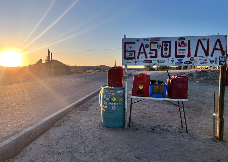 Today I made it past the 225-mile gas desert. Midway through, just as expected, I had to pull over and refill using my fuel...
