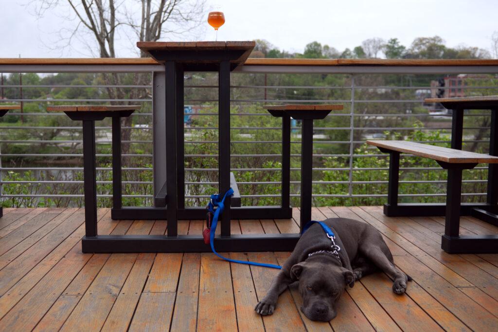 Later in the day, we stopped by New Belgium Brewery, which has a huge outdoor patio overlooking the French Broad River. The weather couldn’t have been better. A little humid, but overcast with a light breeze. Perfect for sitting outside with a drink in hand and my best friend at my feet.
