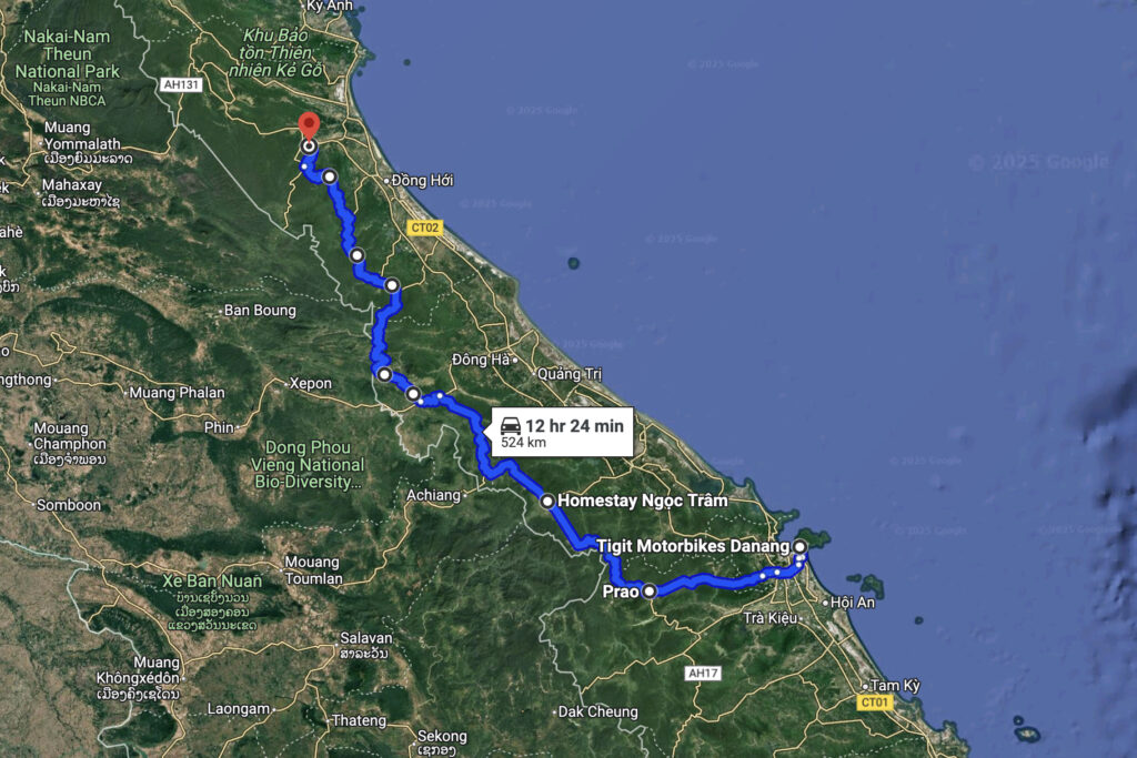 Finally, instead of breaking it up by day, here’s a full look at the Ho Chi Minh Road segments I covered this trip (a total of 326 miles, or 524 kilometers).