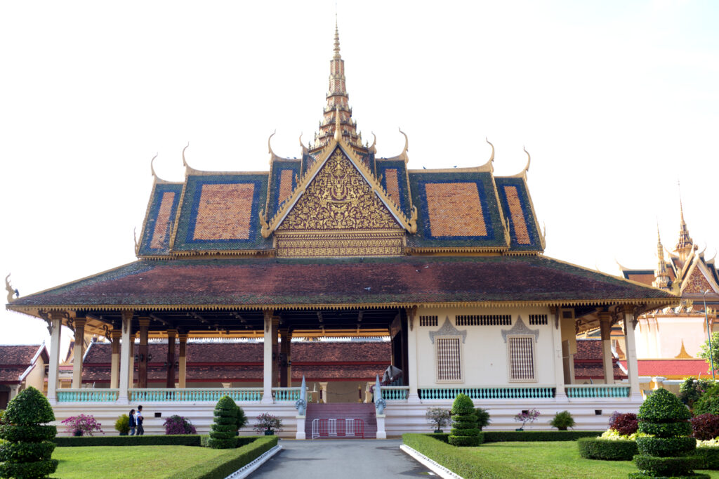 Beyond the Moonlight Pavilion, several other landmarks across the palace grounds caught my attention. First is the Silver Pagoda, named for its floor made of over 5,000 silver tiles. It houses some of Cambodia’s most sacred treasures, including a life-sized gold Buddha encrusted with diamonds.